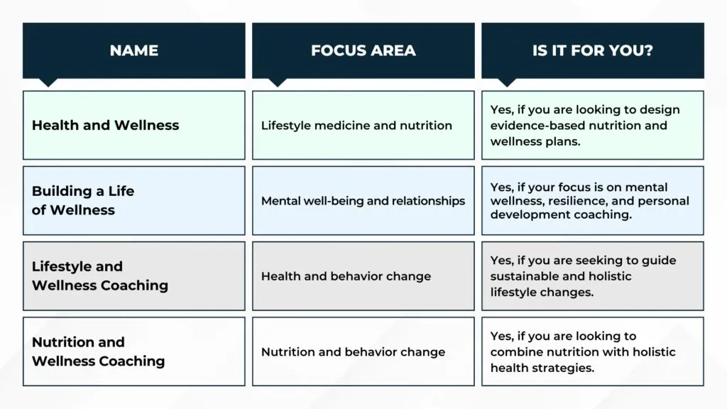 Key Lifestyle and Wellness Coaching Curriculum Highlights