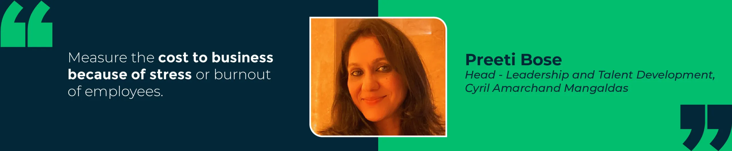 “Measure the cost to business because of stress or burnout of employees,” says Preeti Bose drawing our attention to a critical aspect of women pulling a double load when it comes to responsibilities at home and work. Thus, designing pathways to leadership and creating support systems for women to manage their mental/physical well-being as well as balance work-life is crucial.