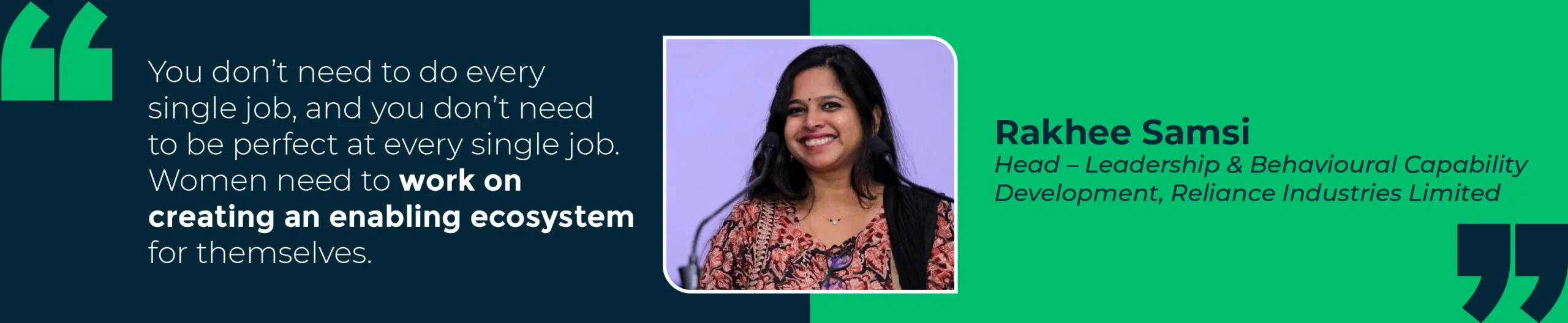 Rakhee Samsi backs this up as she says, “You don’t need to do every single job, and you don’t need to be perfect at it. Women need to work on creating an enabling ecosystem for themselves.”