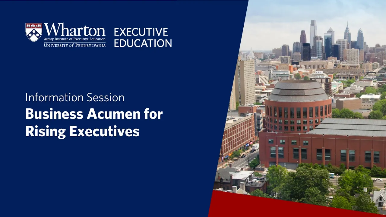 The Business Acumen for Executives program from Wharton Executive Education will enhance your strategic management skills in six key areas of business. This six-week online program will empower you to interact more effectively and make impactful cross-functional decisions to drive growth within your organization.
