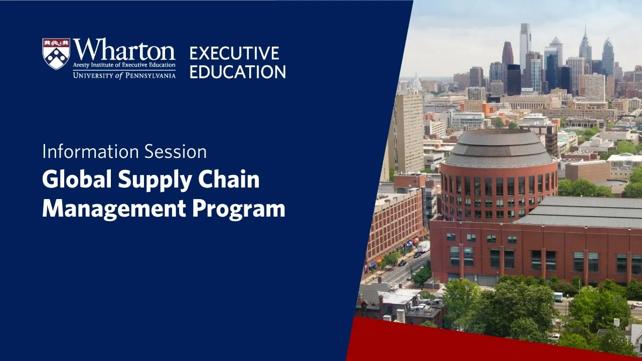 Wharton's six-week online Global Supply Chain Management Program offers a comprehensive overview of contemporary global supply chain challenges. Participants will explore how supply chains have adapted to global pressures and devise a plan to reimagine the current global supply chain based on identified opportunities for improvement. Wharton's renowned faculty will provide expertise regarding the skills required to coordinate global logistics, purchasing, operations, and market channel strategies in a responsible and sustainable manner.